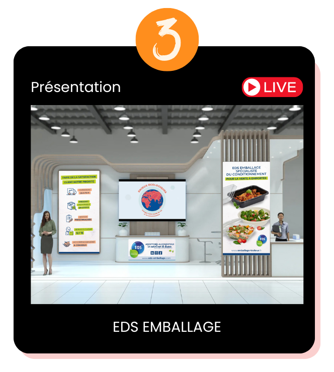 Vous découvrirez les stands virtuels de tous les prestataires. Sur chacun des stands, vous retrouverez : webinaires, présentation vidéos et la possibilité d'échanger avec un conseiller si vous êtes intéressés.